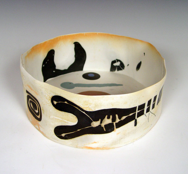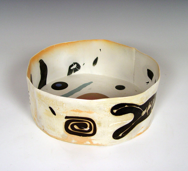 DAVIES, Robin, (): Attribution. Ceramic Bowl with abstract designs. Unsigned. 4 1/8'' h x 11'' dia.