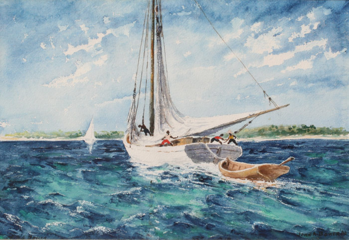 BOWER, John A., (American, 20th C.): Sloop in the Bahamas, Watercolor, sight size 14 1/2'' x 21 3/8'', signed, dated '60, framed, 19 1/2'' x 26 1/2''.