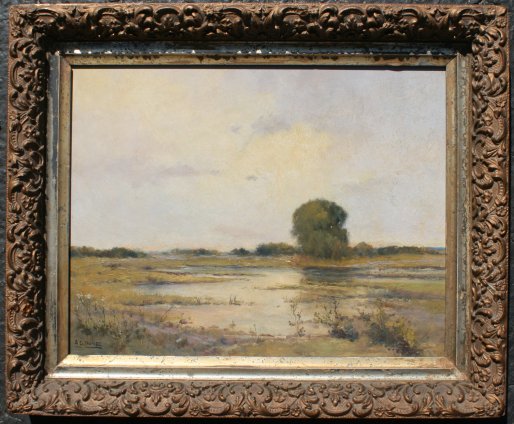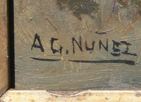 NUNEZ, Armando Garcia, (Mexican, 20th C.): Pastoral Marsh Landscape, Oil/Masonite, 12'' X 16'', signed, period gesso frame with gold paint, 15 1/2'' X 18''.