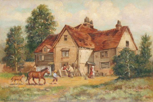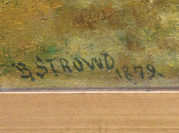 19TH C LANDSCAPE PAINTING SIGNED STROWD: OIL/Board, 9 3/8'' x 13 5/8'', signed B. Strowd and dated 1879, period frame, 16'' x 20''.