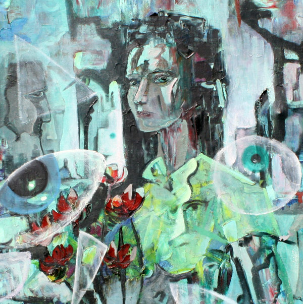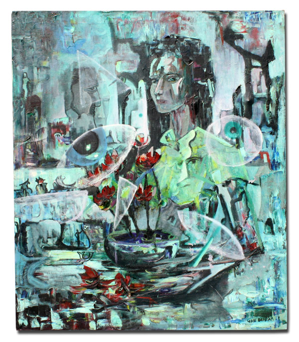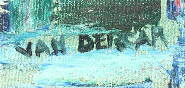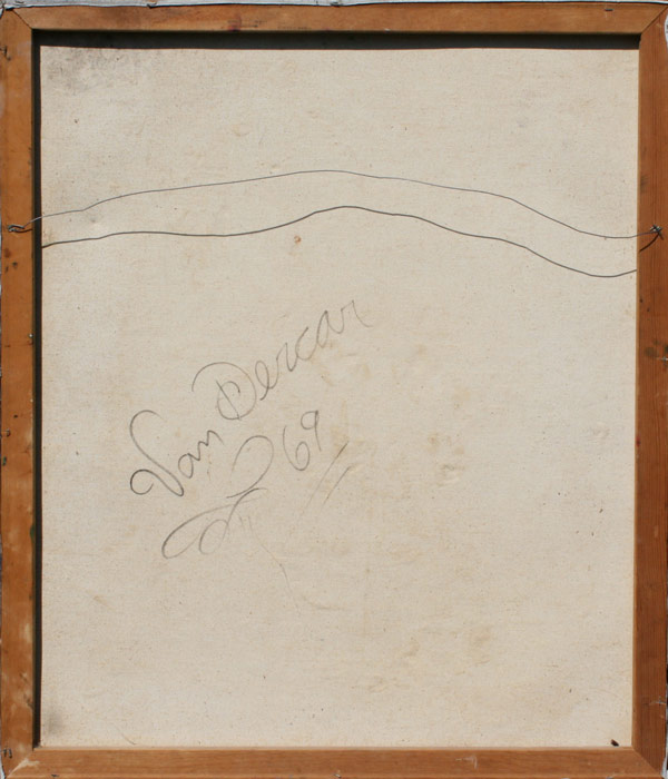 VANDER CAR, Lewis, (American, 20th C.): ''Blood of Jesus on This Picture'', OIL/Canvas, 40'' x 44'', signed, titled verso, unframed. Noted Florida artist; surreal and unusual were his specialties.