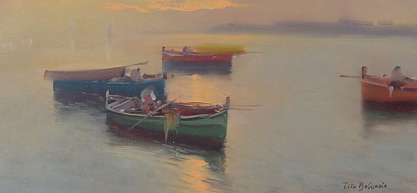 BELASARIO, Tita, (Italian, 20th C.): PR Italian Harbor Scenes, Oil/Canvas, 8'' x 16'', signed, matching frames, 14 1/2'' x 22 1/2''.