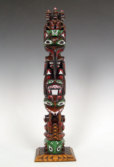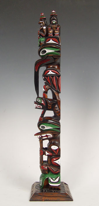WILLIAMS, Ricky L., (American, 20th C.): Carved Northwest Totem, Wood Sculpture, signed, 25'' h.