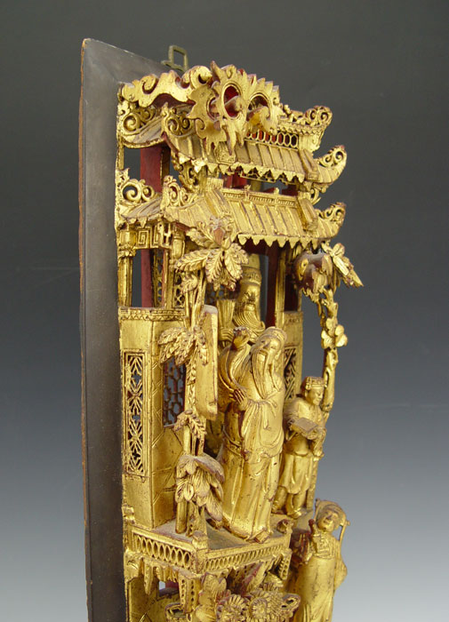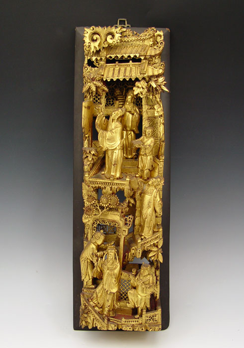 CHINESE CARVED ARCHITECTURAL PANEL: Measures 19'' x 6 '' x 2 1/2''.