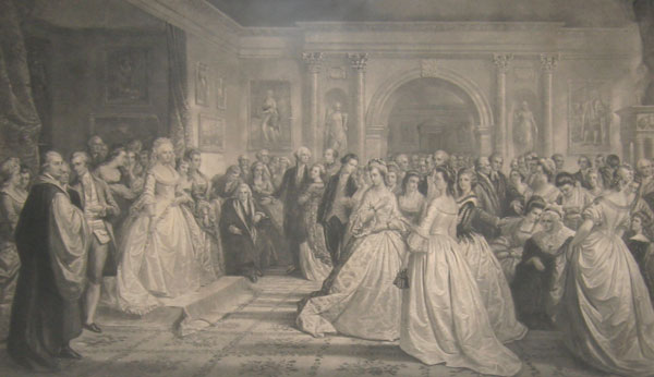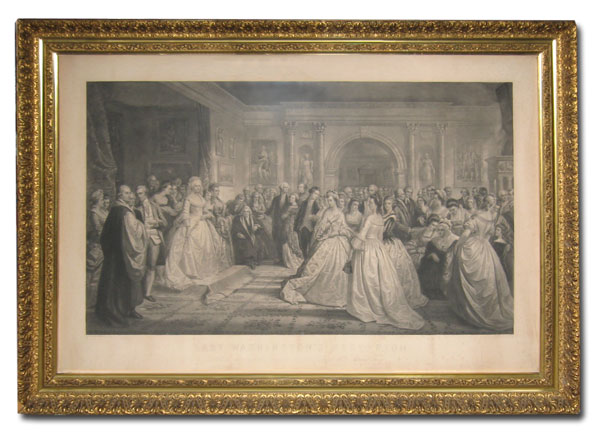 'LADY WASHINGTON'S RECEPTION'' ENGRAVING: By Ritchie after a painting by Huntington, Published by Seitz, sight size 27'' x 39 1/2'', gilded gesso frame, 33 1/2'' x 46''.