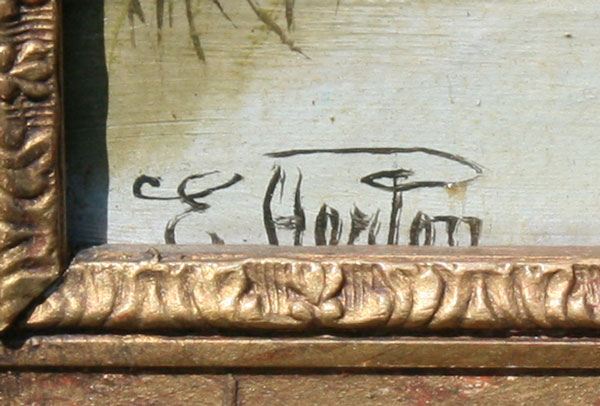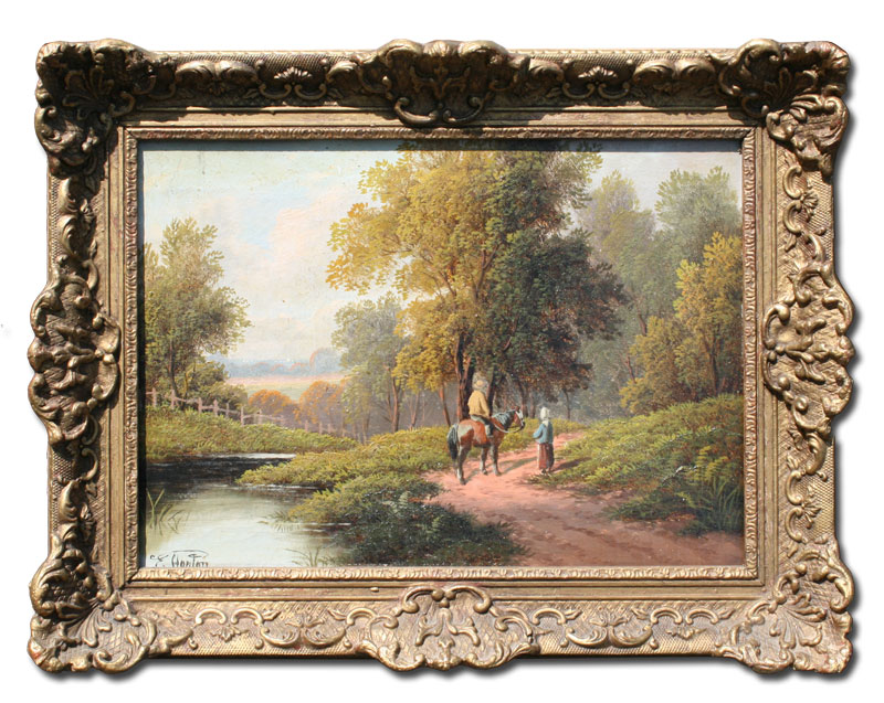 HORTON, Etty, (British, -1905): Figures Along a Path, OIL/Canvas, 10'' x 14'', signed, gilded gesso frame with gold paint, 14'' x 18''.