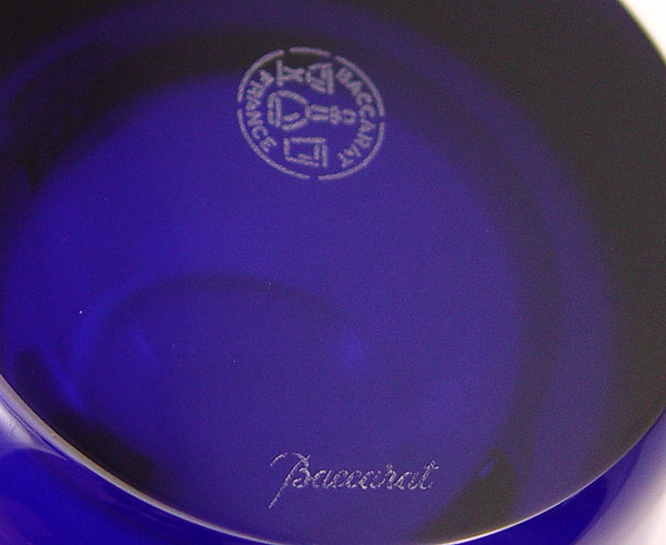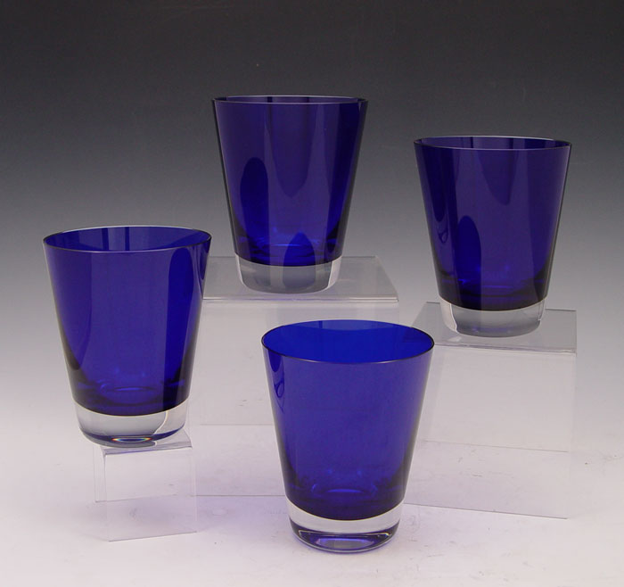 SET OF 4 COBALT BACCARAT CRYSTAL TUMBLERS: 4 1/2'' x 3 3/4'' dia.