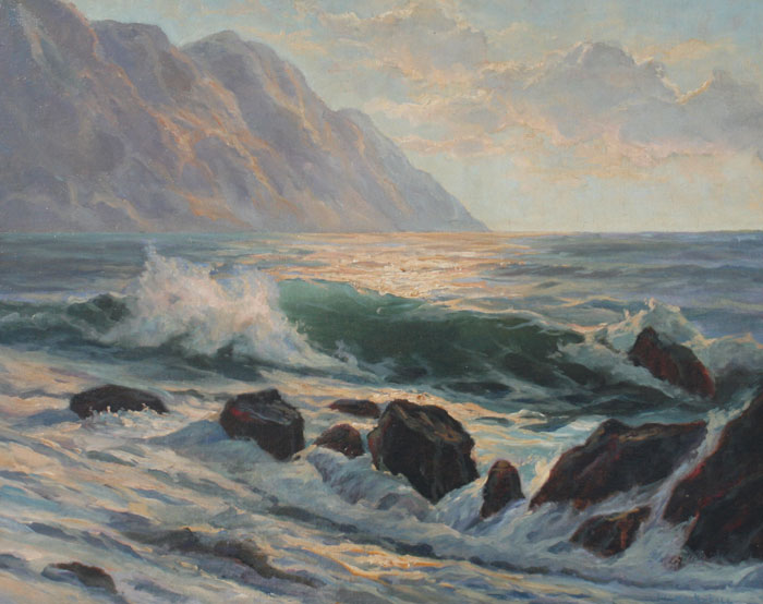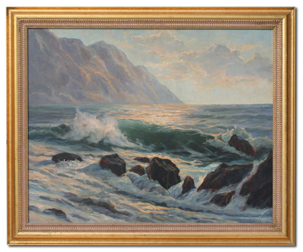 KIMBALL, Velma, (American, 20th C): Rocky Coast & Cliffs, Oil/Canvas/Board, 24'' x 30'', signed, framed, 29'' x 35''.