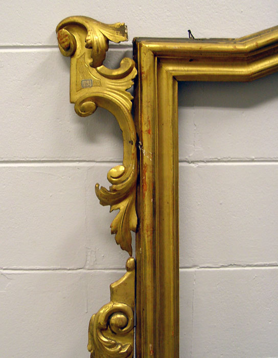 ROCOCO ORNAMENTAL GOLD GILT FRAME: Approx. 49'' x 72'' without crest, 62'' x 35 1/2'' inset.