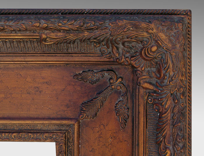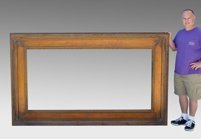 LARGE CARVED WOOD FRAME: Bronze painted finish, measures 55'' x 91'', inset 36 1/4'' x 72 1/4''.