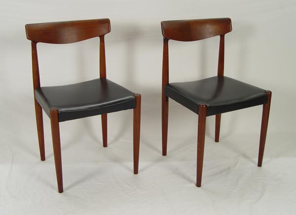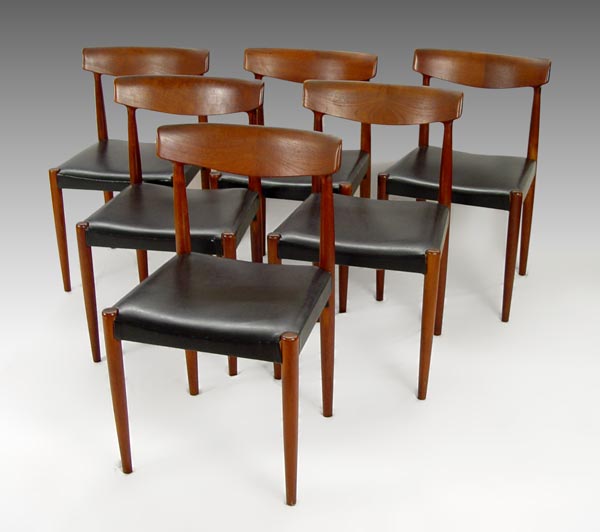 SET OF 6 SLAGELSE MOBELVAERK DANISH MODERN CHAIRS: Six side chairs with black leather seats. 31'' x 16 1/2'' x 19''. Paper label.