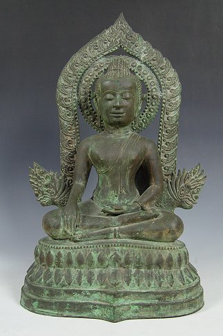 SEATED BRONZE DEITY: 27 1/2'' h x 17 1/2'' x 10'', age unknown.