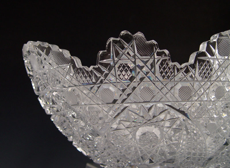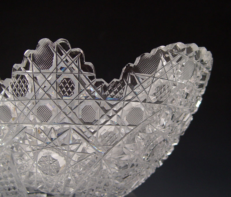 BRILLIANT PERIOD CUT GLASS VASE AND BOWL: 1) Large fruit bowl, 11 1/2'' length. 2) Tall pinched waist vase, 16''h.