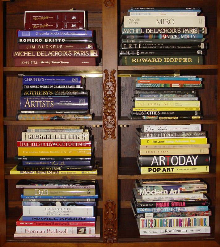 TREMENDOUS ART BOOK LIBRARY: Approx, 65 books to include books featuring the art of ''The Art of Fris Freleng'', Michael Delacrois, Miro, Pop Art, Modern Art, Erte, Rockwell, Neiman, Dictionary of Artists, Manet, Rivera, John Lennon, Theater posters, Warhol and more.