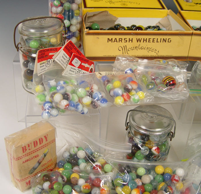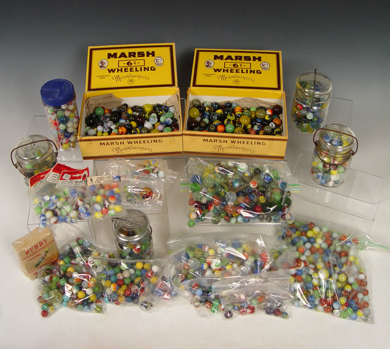 MASSIVE COLLECTION OF VINTAGE MARBLES: Most are from the Wheeling, West Virginia area. To be sold as a lot. From the estate of John R. Rader.