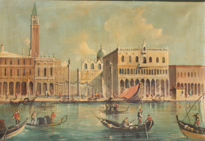 DECORATIVE VENETIAN CANAL SCENE AFTER GUARDI: OIL/Canvas, 38'' x 39 1/2'', unsigned, framed, 43'' x 44 1/2''.