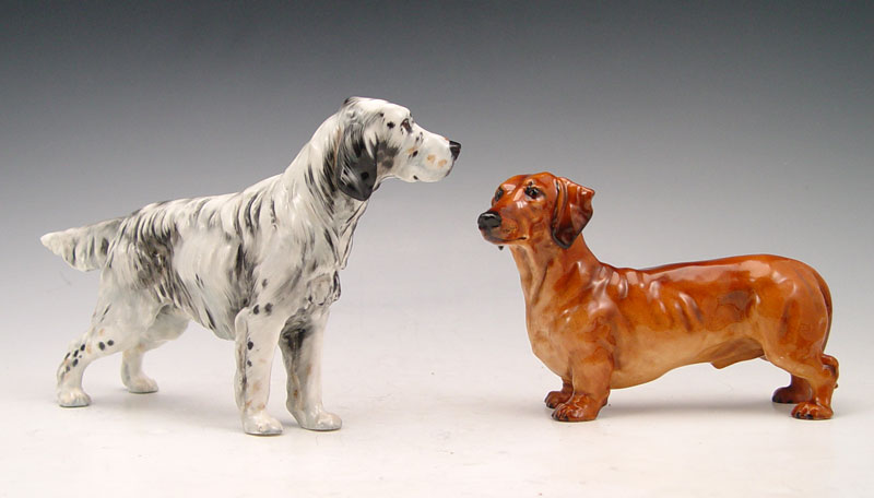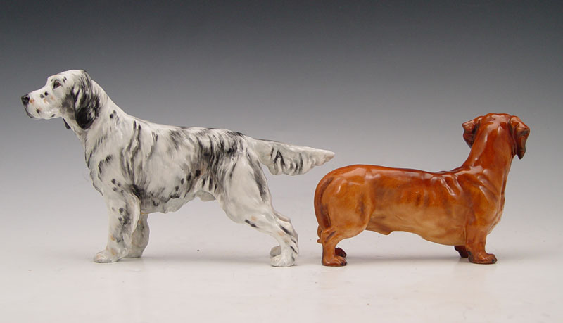 2 PIECE ROYAL DOULTON DACHSHUND & SETTER: To include 1) HR 1140, Dachshund, 4'' h. x 6 1/4''. 2) HR 1050, English Setter, 5 1/4'' x 8 1/2''.