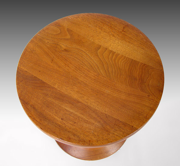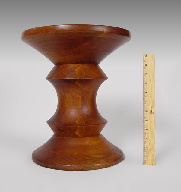 HERMAN MILLER EAMES TIME LIFE STOOL: Designed by Ray Eames for the lobby of the Time-Life building in New York. Can be set with either side up. Solid walnut construction. Measures 15'' high x 13'' top dia., 11'' bottom dia.