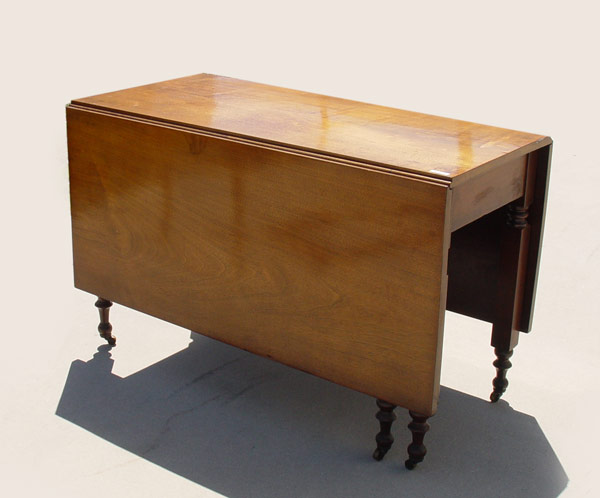 19th C WALNUT DROP LEAF TABLE: 28 1/2'' tall x 47'' x 21 1/2''. Each of the leaves are an additional 21'' to make the table 63'' length.