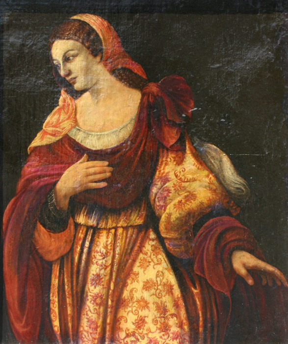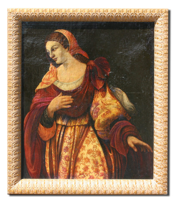 19TH CENTURY FEMALE PORTRAIT: OIL/Canvas, 36'' x 40 1/2'', heavy gilded and carved contemporary frame, 42'' x 36''.