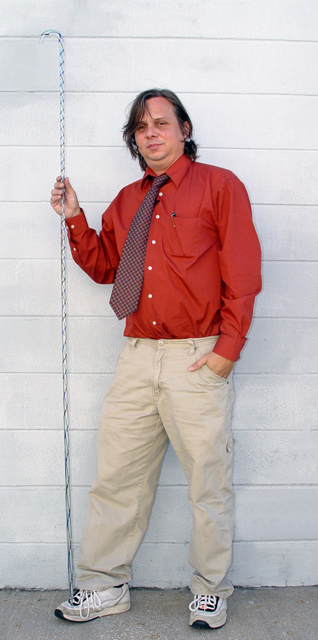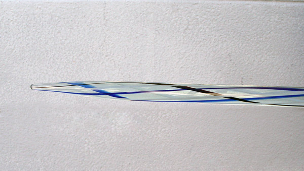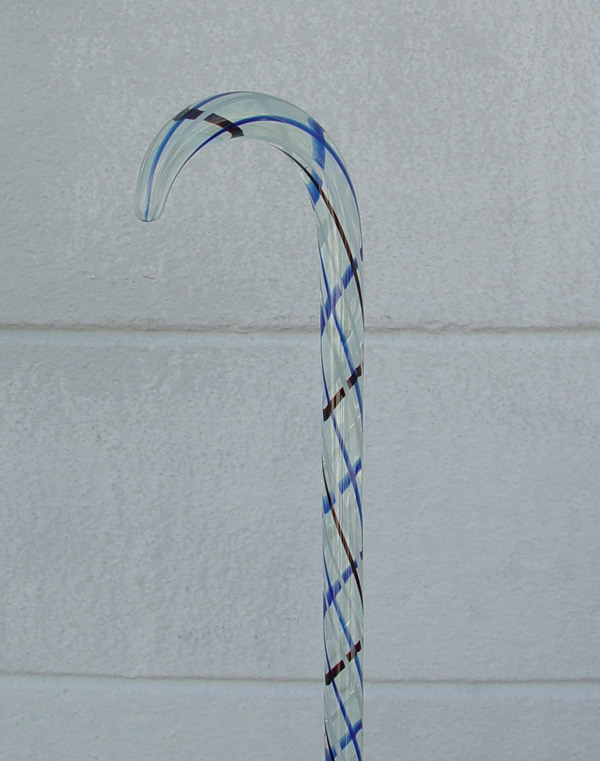 GLASS WHIMSY CANE: 6' 2 1/2'' long, solid glass with red, white & blue stripes.
