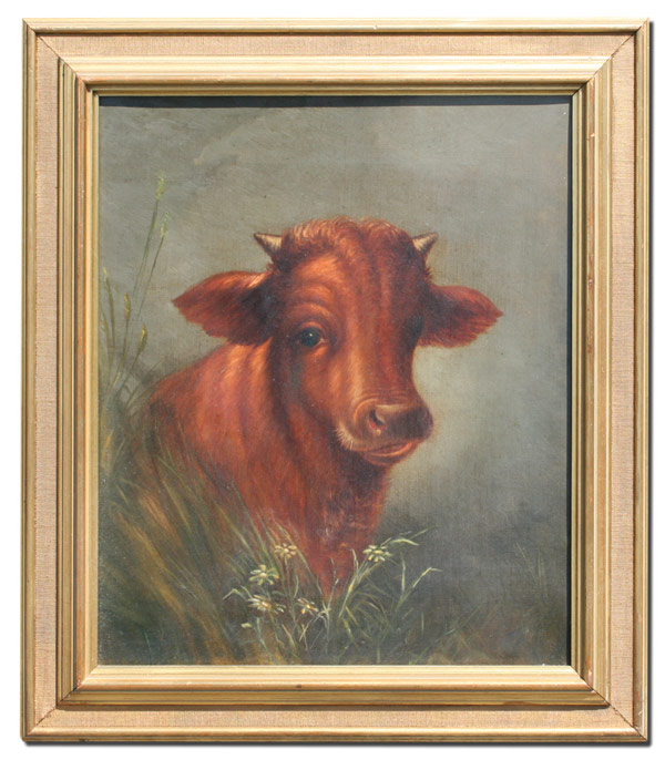 19th C. HIGHLAND COW PORTRAIT: OIL/Canvas, 18'' x 15'', gilded frame 22 1/4'' x 19 1/4''.
