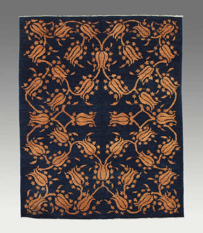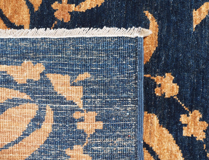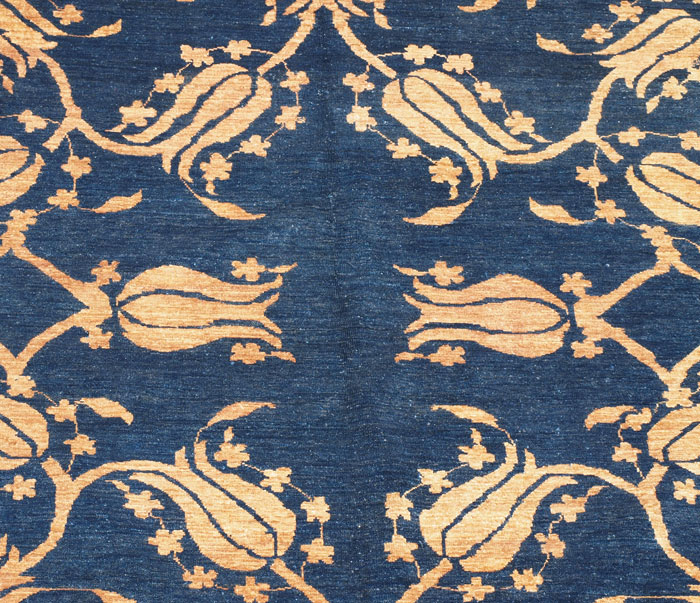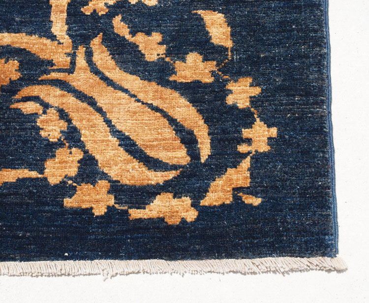CHOBI BLUE & GOLD HAND TIED RUG: Approx. 9' 4'' x 7' 8''