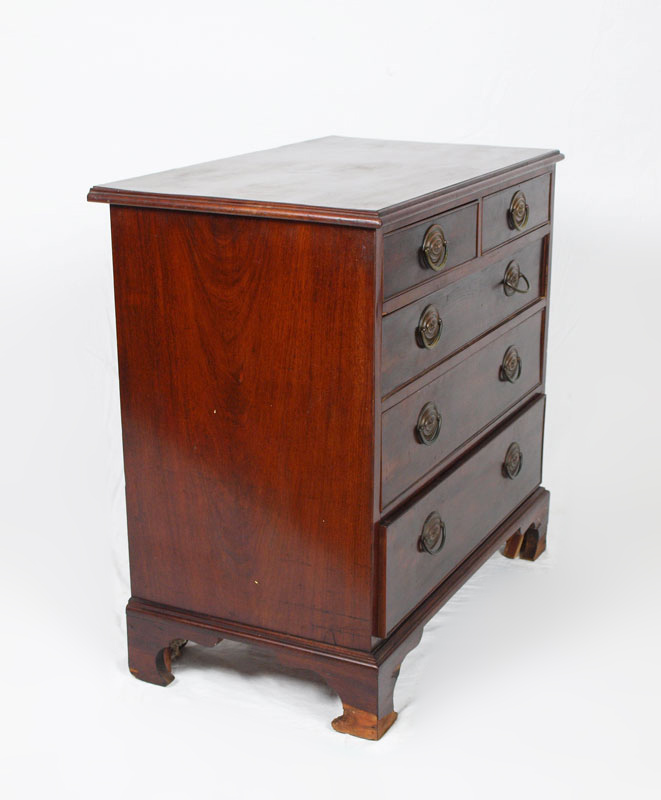 DIMINUTIVE CHIPPENDALE STYLE MAHOGANY CHEST: 4 drawer, 29 3/4'' h. x 30'' x 18''.