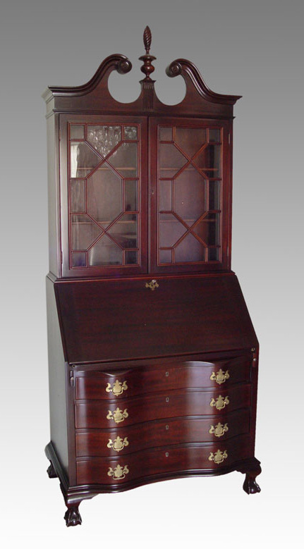 MADDOX SERPENTINE FRONT BALL AND CLAW FOOT SECRETARY BOOKCASE: Marked interior drawer Maddox Tables in shield. 89'' h. x 36'' x 20 3/4''.