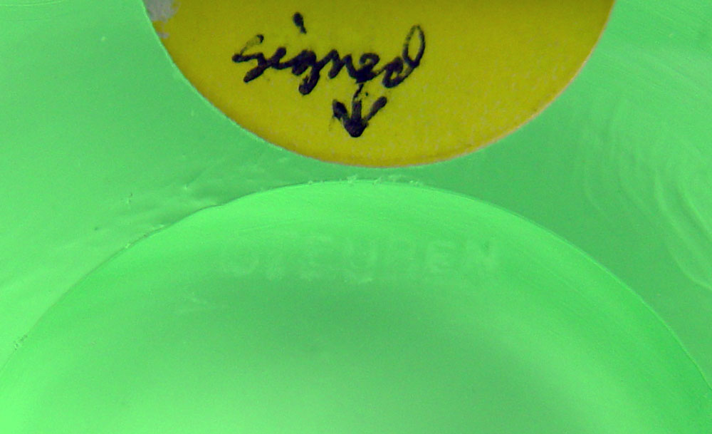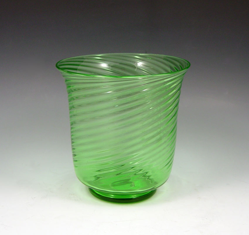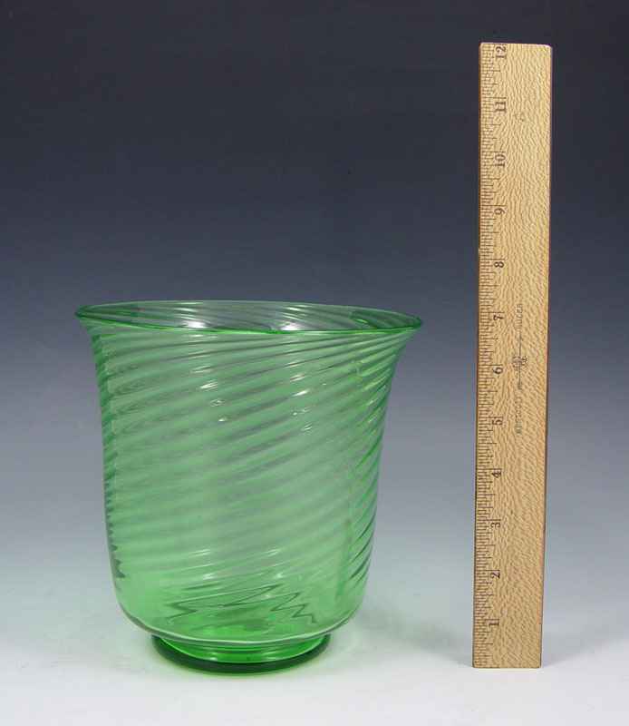 SIGNED STEUBEN GREEN SWIRL VASE: Swirl body, flared rim. Signed. 6 7/8'' h. x 6 7/8'' dia.
