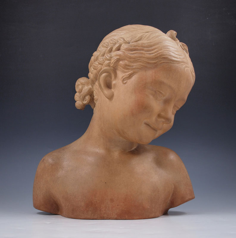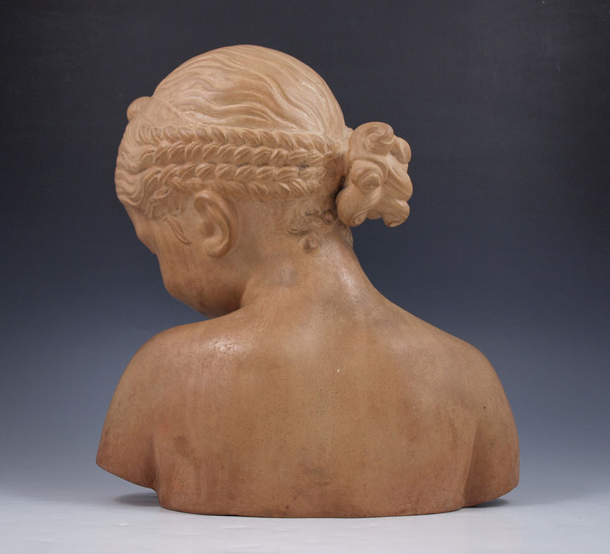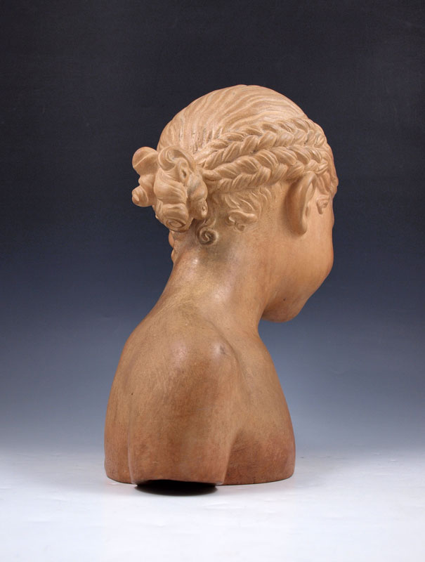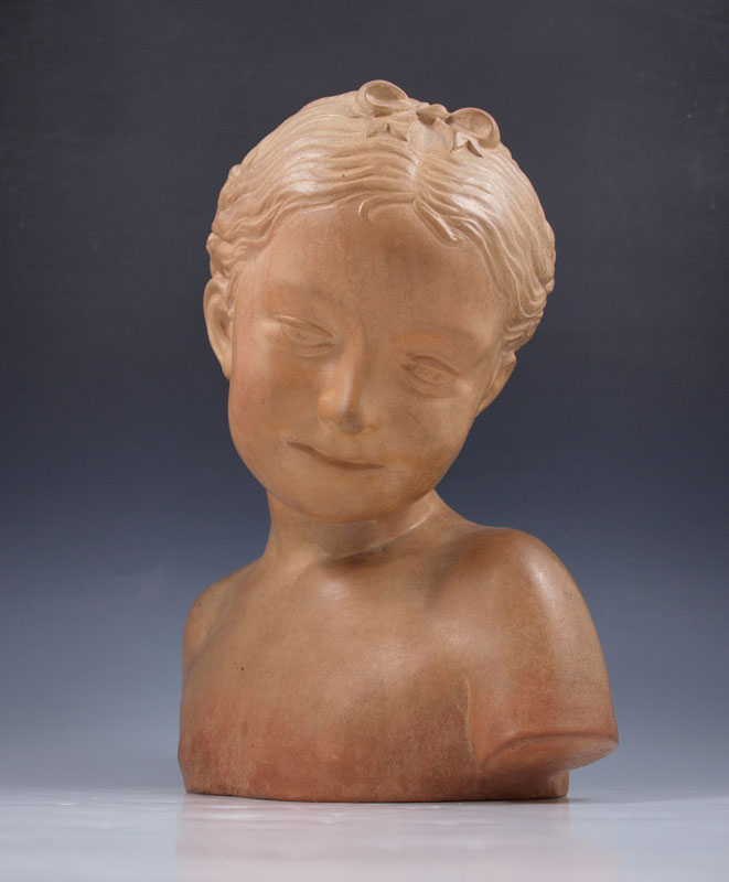 R. BERTELLI SIGNED TERRA COTTA BUST OF A YOUNG GIRL: Approx. 12''h., 10'' in diameter, incised 3-Italy-R. Bertelli.