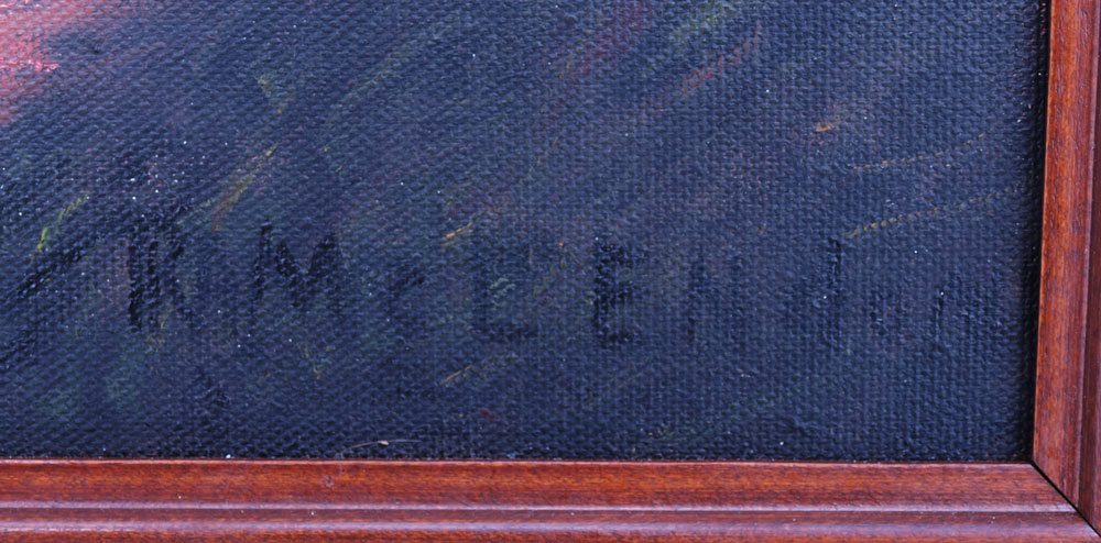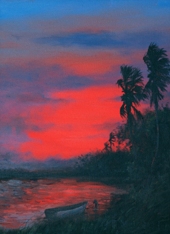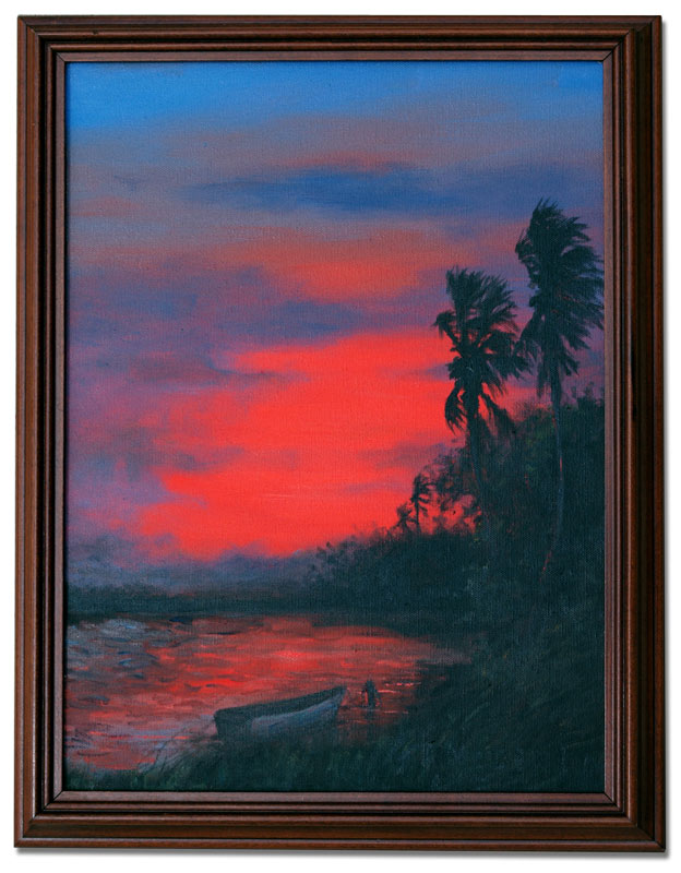 MCCLENDON, Roy, (American, 20th Century): Florida Highwaymen, ''Fire Sky with Boat'', OIL/Canvas, signed lower right, 16'' x 12'', framed 18 1/2'' x 14 1/2''.