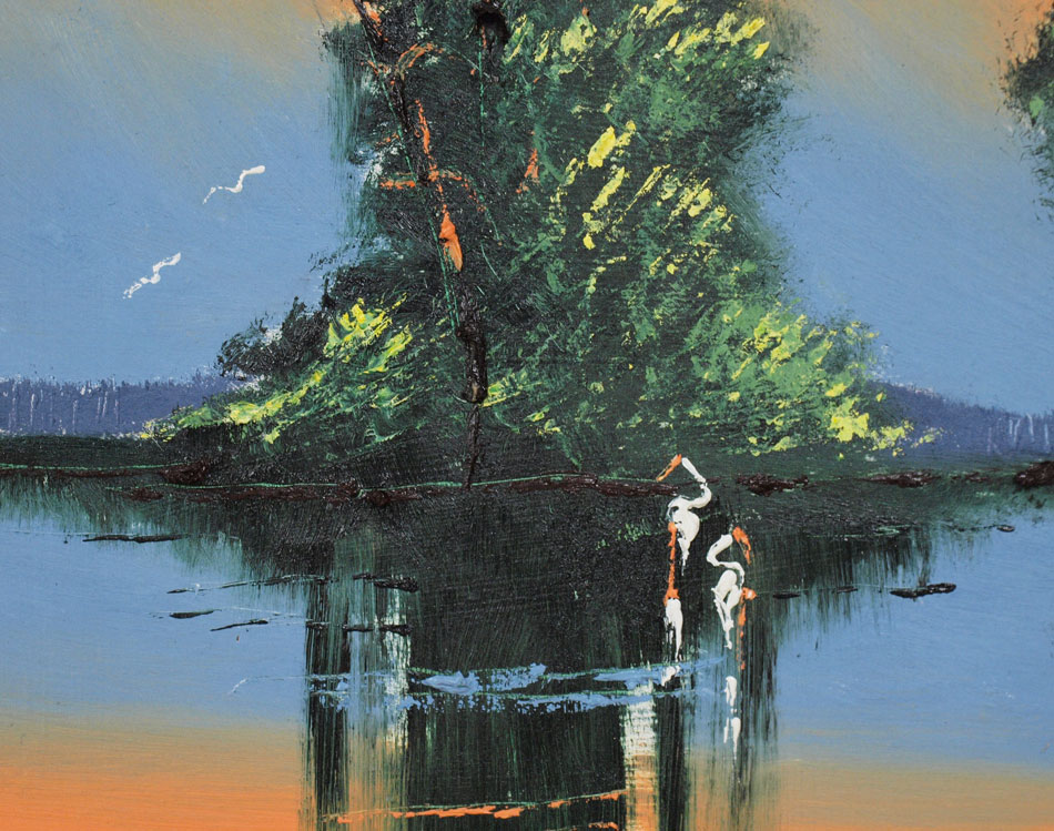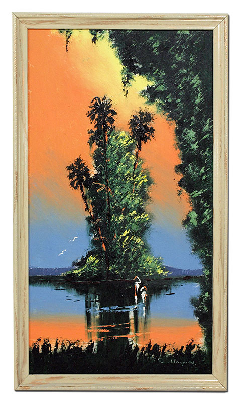 MAYNOR, John, (American, 20th Century): Florida Highwaymen, ''Sunset Backwater'', OIL/Masonite, signed lower right, 22'' x 12'', framed, 23 1/2'' x 13 1/2''.