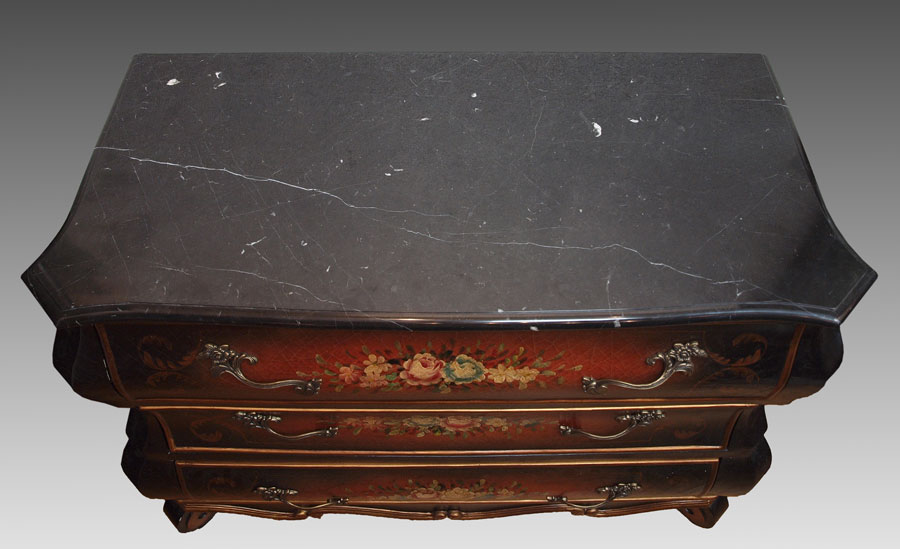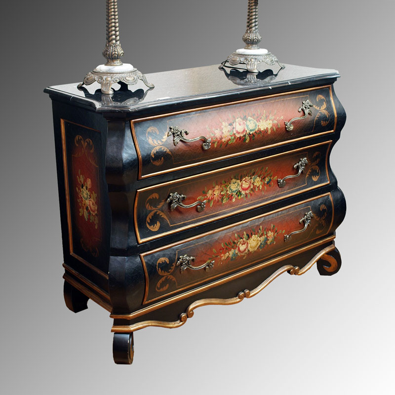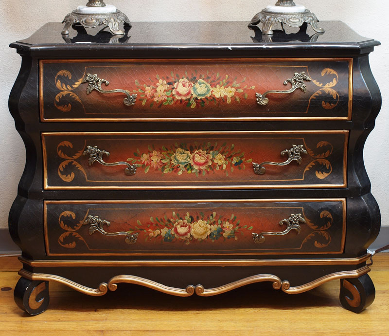 DECORATIVE BOMBAY CHEST: Paint decorated 3 drawer chest.