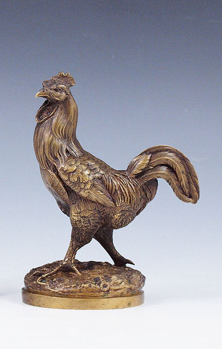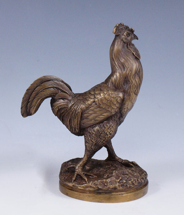 SUPERBLY MODELLED BRONZE OF A ROOSTER : 1st Quarter of 20th C, 4 1/2'' h., no visible signature.