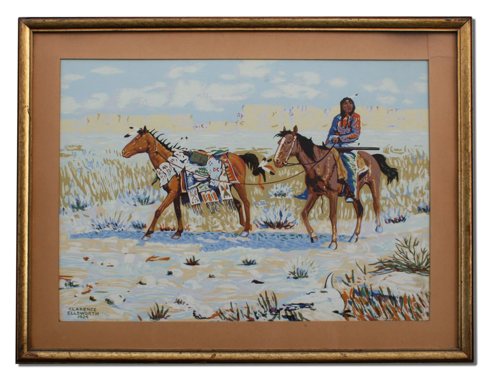 ELLSWORTH, Clarence, (American, 1885-1961): ''To the Trading Post'', Gouache, 17'' x 23 1/2'' sight size, signed and dated 1929, framed, 23'' x 29''.