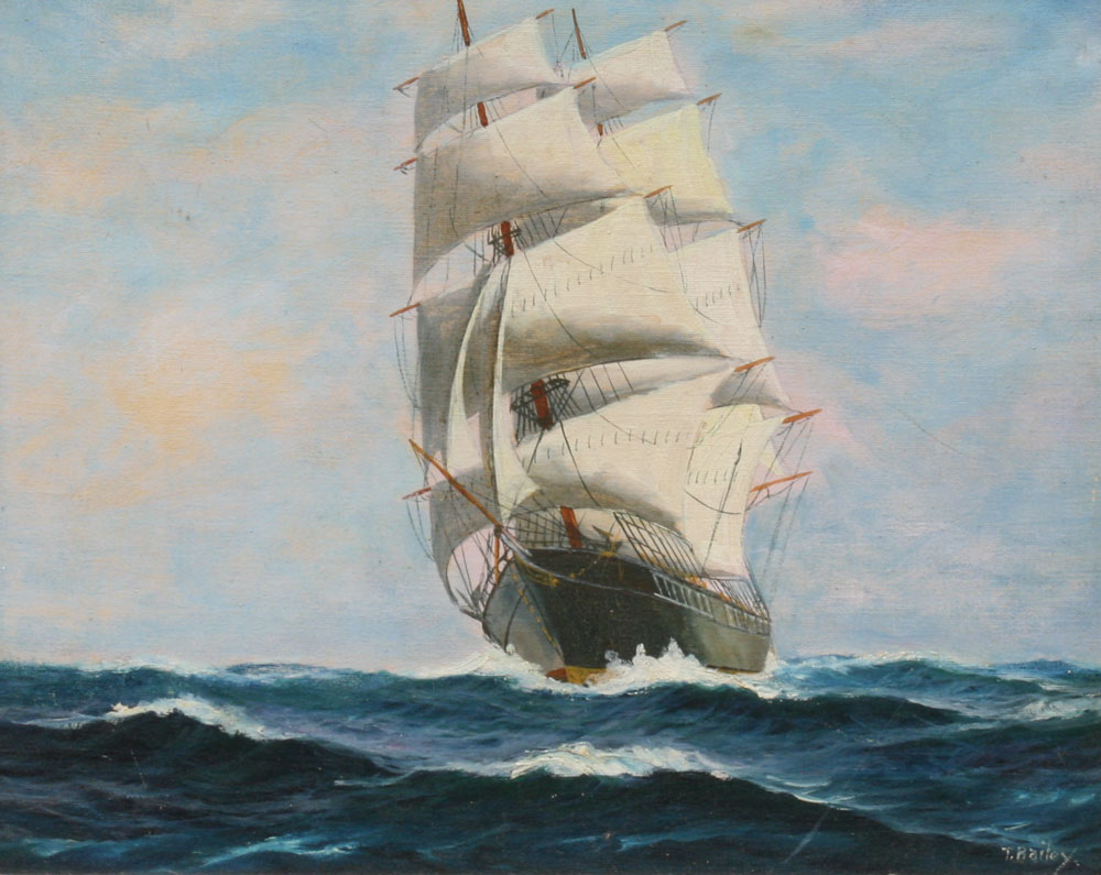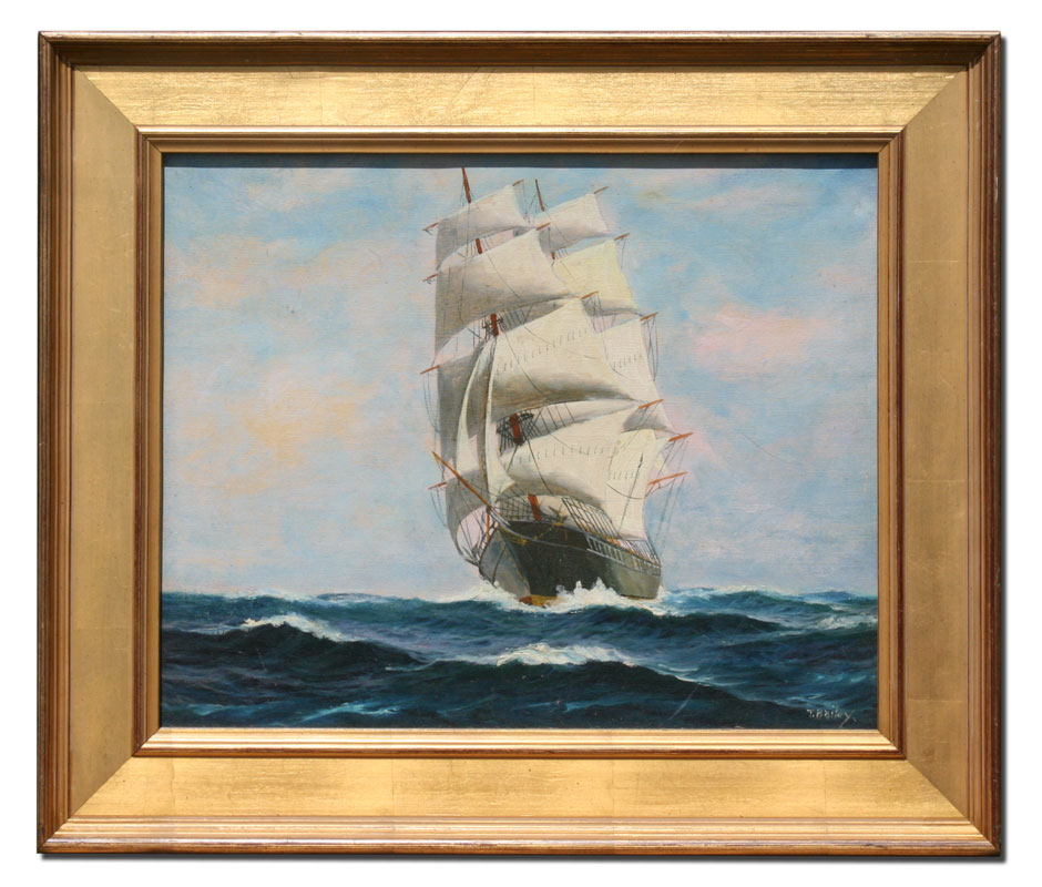 BAILEY, T. (American, 1866-1951): Clipper Ship, Oil/Canvas, 16'' x 20'', signed, gilded impressionist frame, 22'' x 26''.