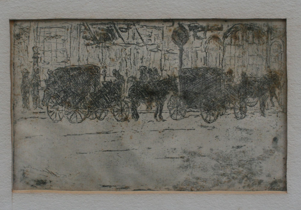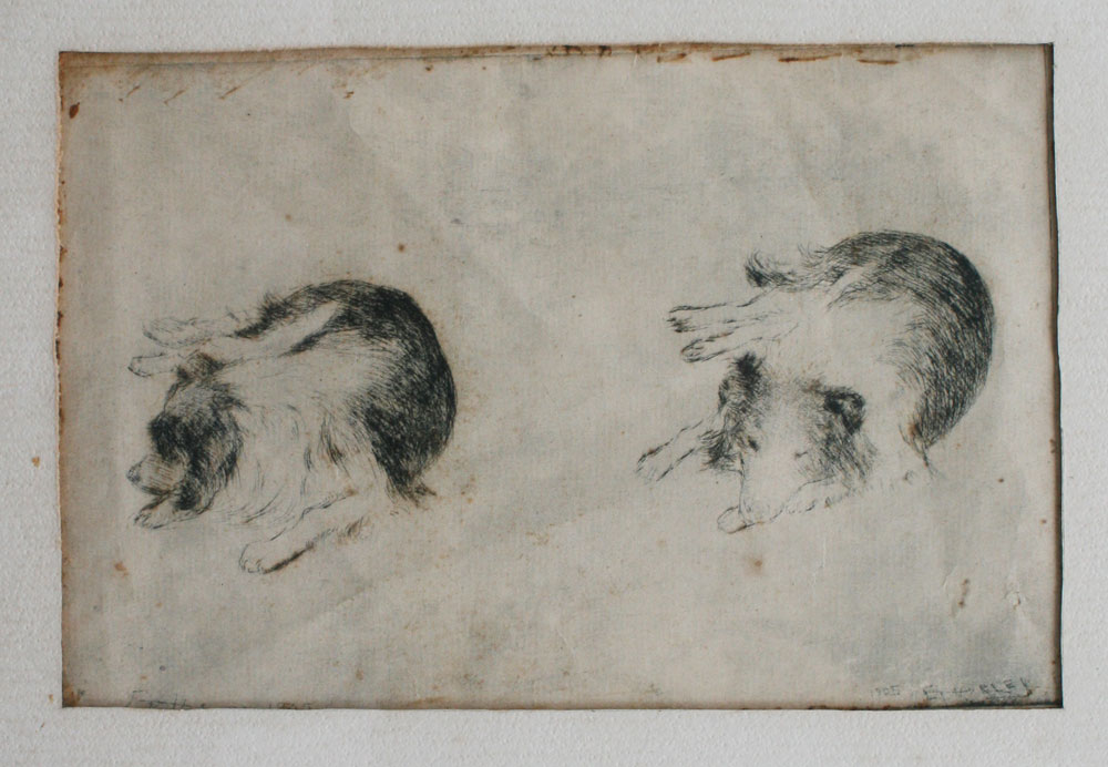 CONDITION: (1) Beachwoods Etching: Scattered pale foxing throughout with some staining, one inch tear in right margin, quarter-inch tear in upper left margin. (3) Street Scene with Figures: Scattered foxing. (4) Collie Studies: Scattered foxing. (5) Several Studies of Collies: Several spots of foxing. (6) ''Fountain'': Some unevenness in the color with white spots in the margins. Sold as is.