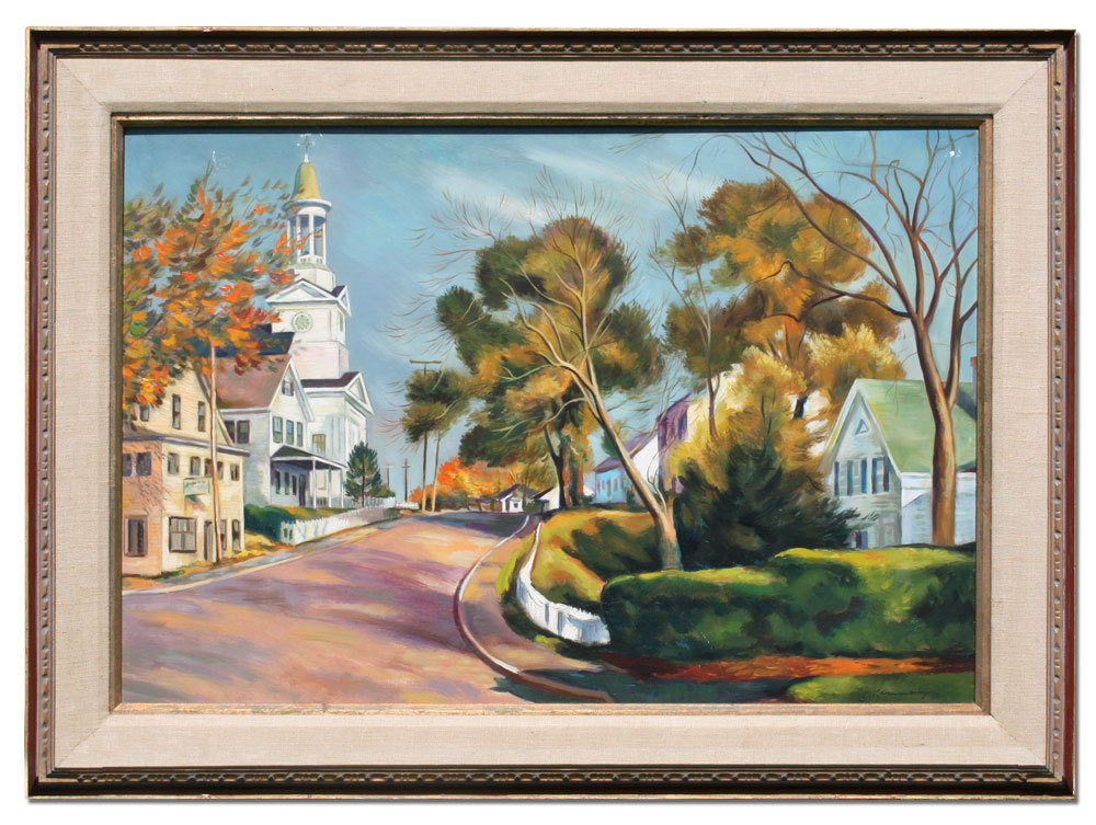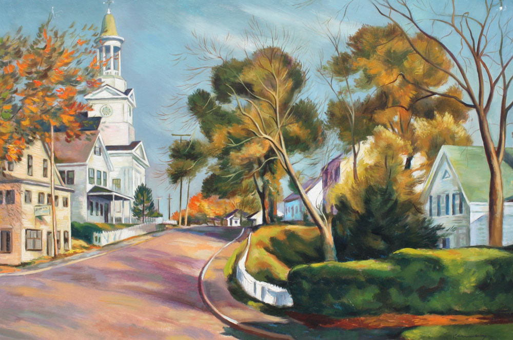 WPA-ERA TOWNSCENE: OIL/Canvasboard, signed Kennedy, 24'' x 36'', framed, 31 1/2'' x 43''.