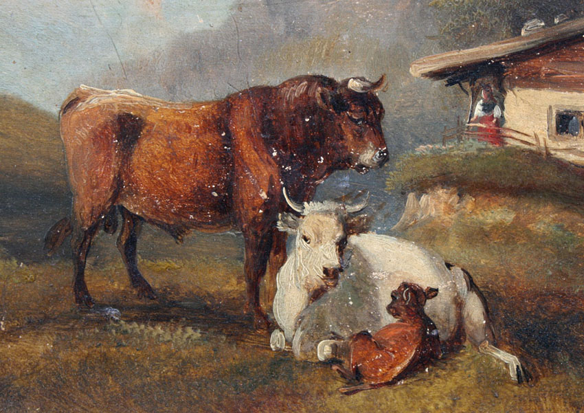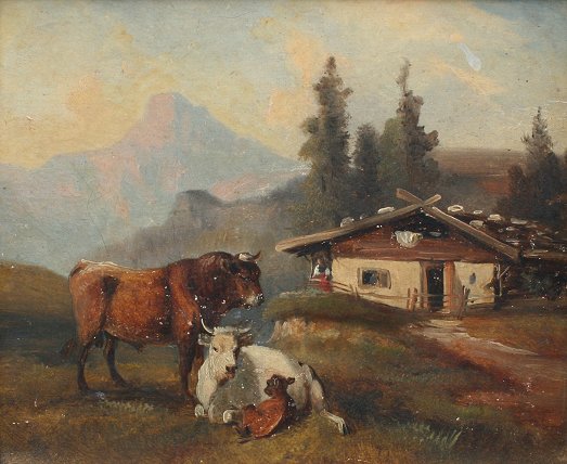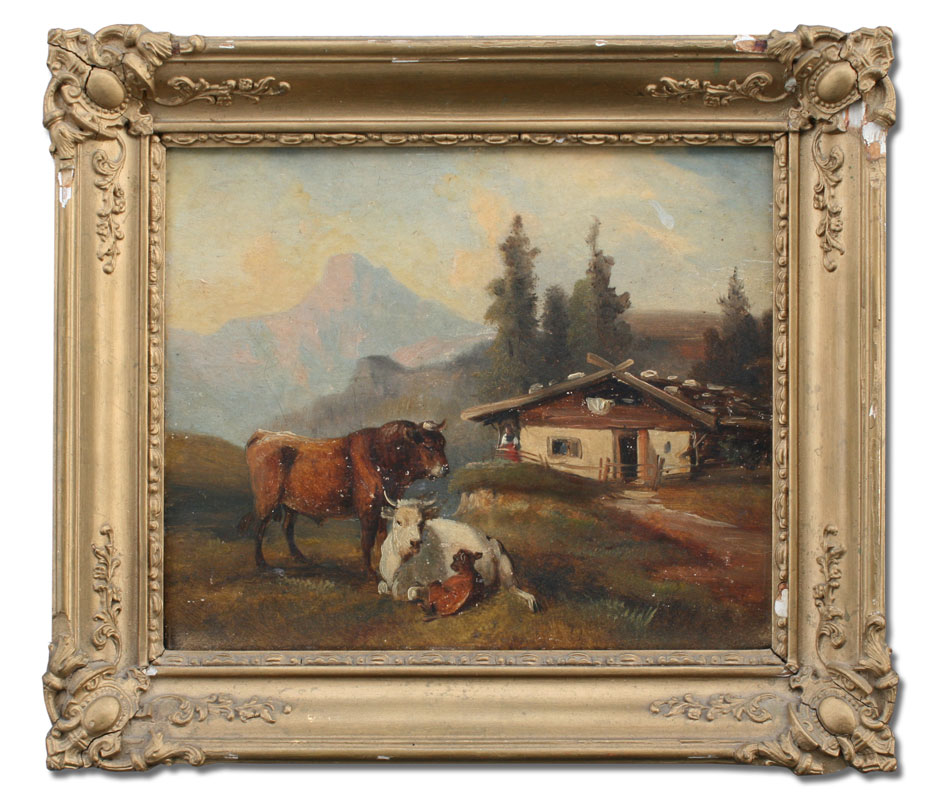 HEICKE, Joseph, (German, 1811-1861): Cows in Landscape, OIL/board, 10 1/2'' x 12 1/2'', no visible signature, gilded frame with minor wear, 14 1/2'' x 16 1/2''.