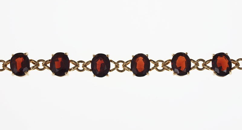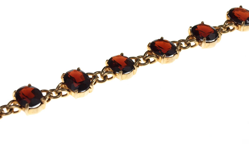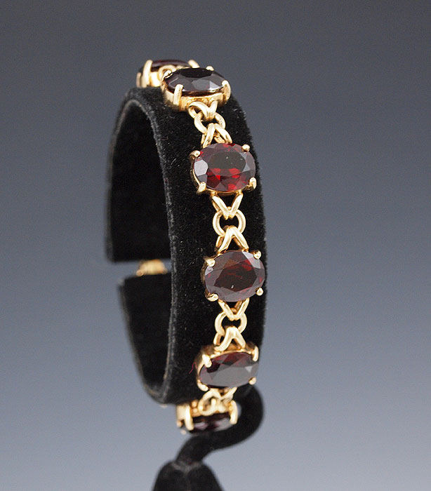 A RICH LOOKING 35 CT GARNET BRACELET: 14K yellow gold bracelet show casing 10 oval faceted cut garnets, each approx. 3.5 Ct. Length 7 1/4''. 28.1 grams.