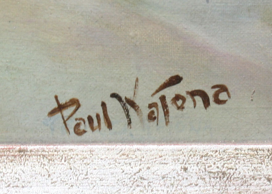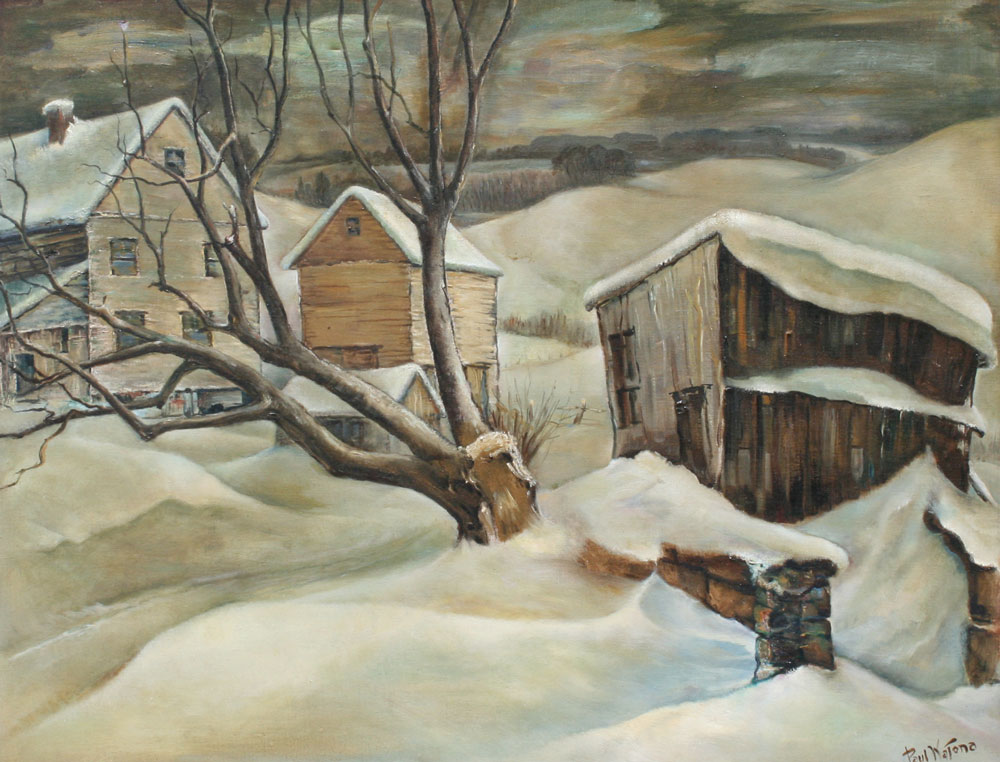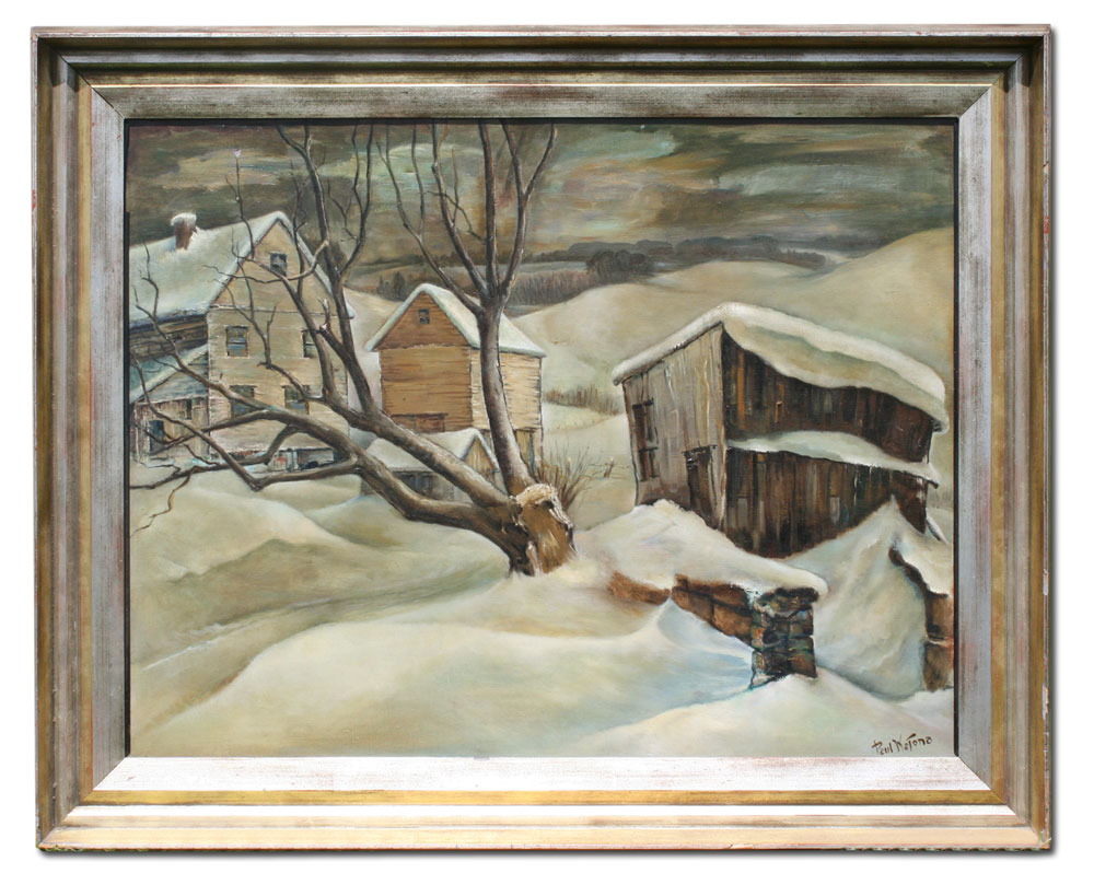 KATONA, Paul, (American, 20th C.): Modernist Winter WPA Style Landscape, Oil/Canvas, 27'' x 34'', signed, framed, 33 1/2'' x 41 1/2''.