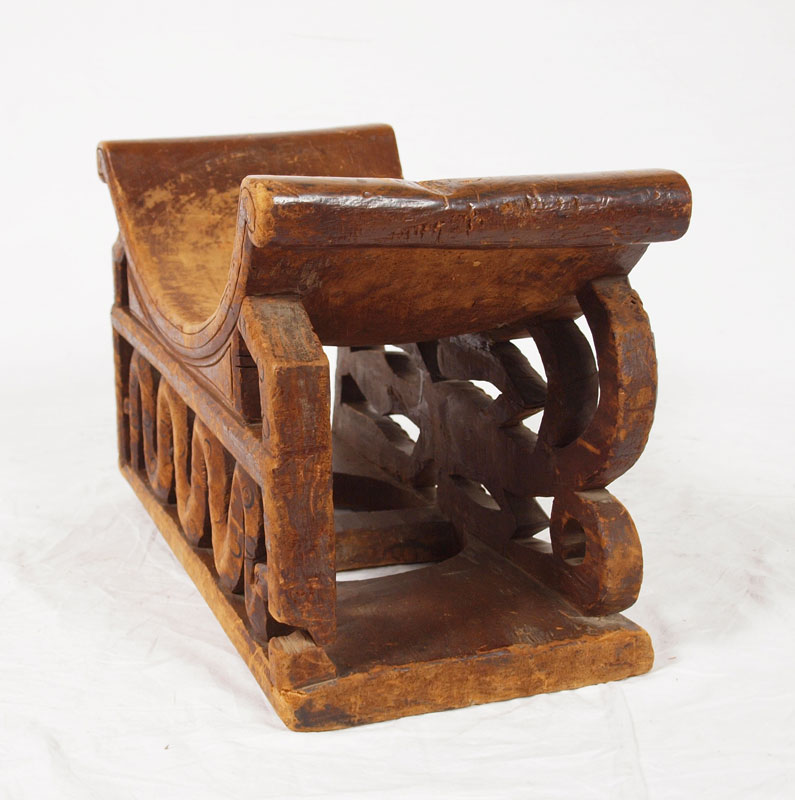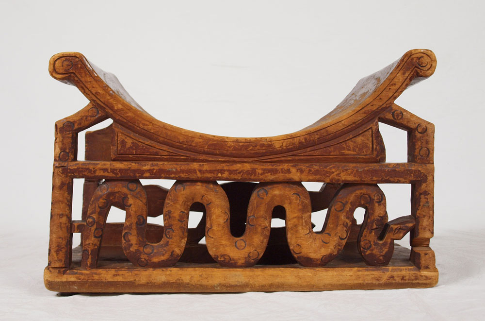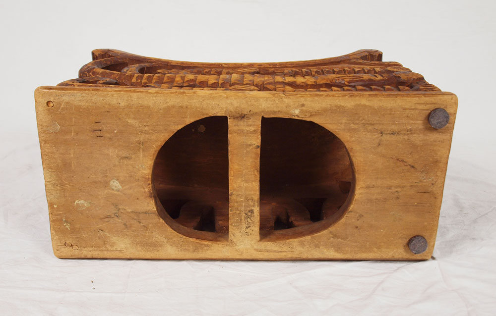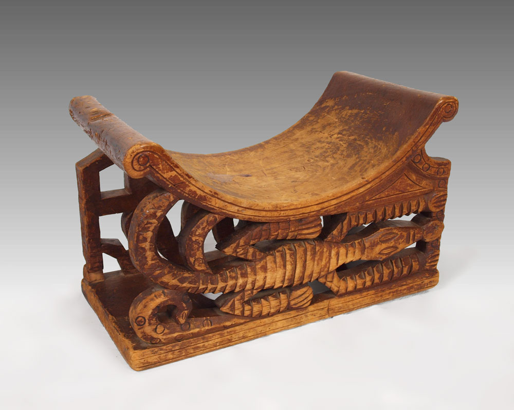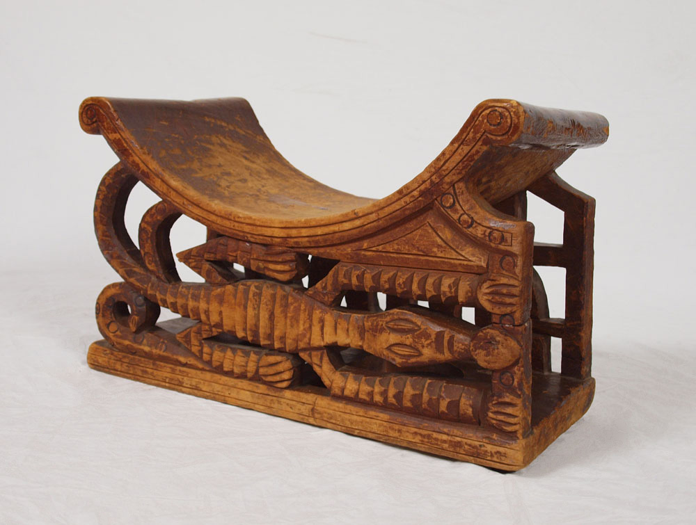 AFRICAN KINGS BENCH: With carved crocodile and snake base. 12 3/4'' h. x 21'' x 9 3/4''