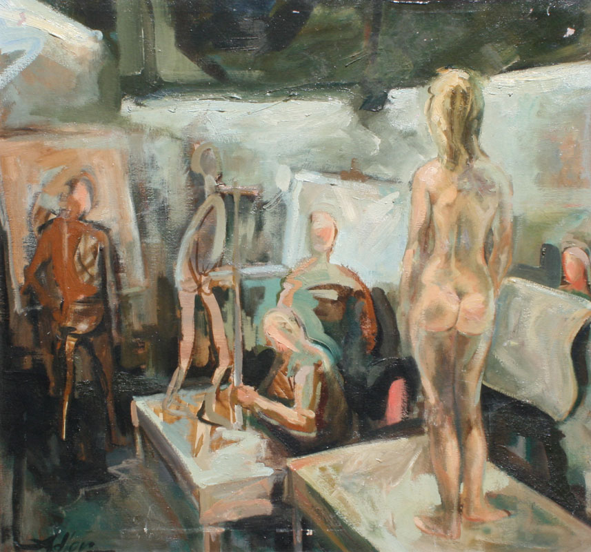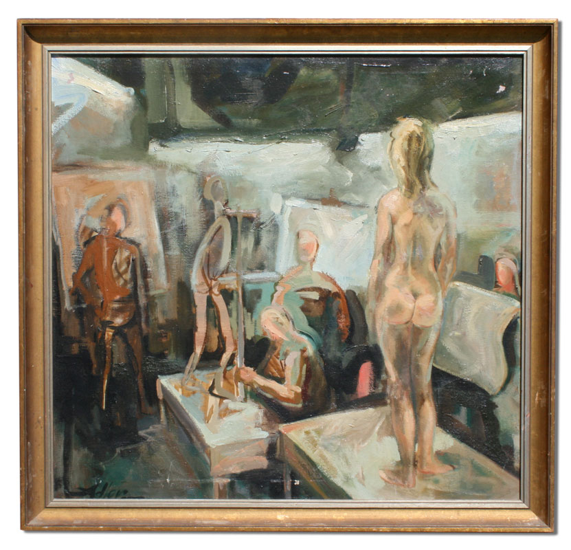 FEMALE NUDE ARTIST'S MODEL: OIL/Canvas, signed Adler, 30'' x 31 1/2'', framed, 33 1/2'' x 35''.