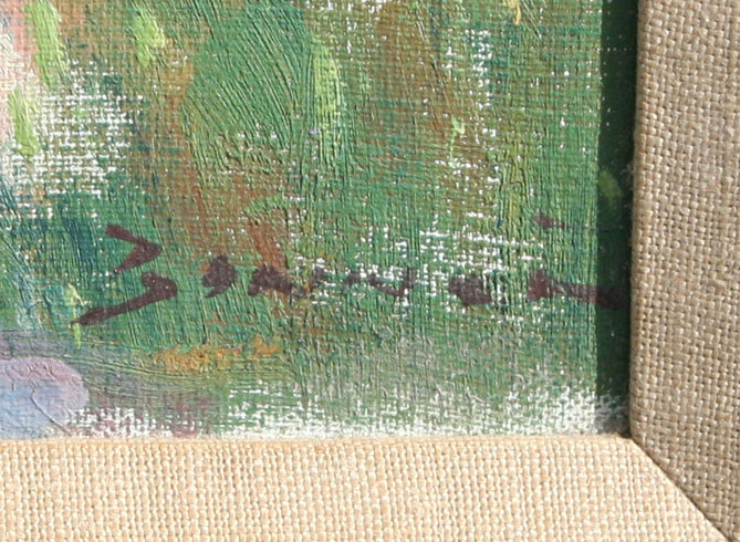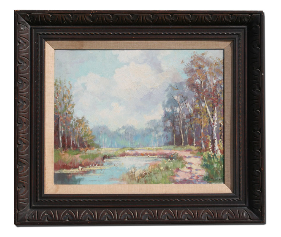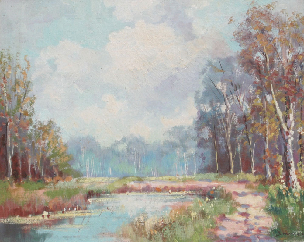 BONNET?, (): Meadow Landscape with Birches, OIL/Canvas, illegibly signed Bonnet?, 16'' x 20'', framed, 25'' x 28 1/2''.