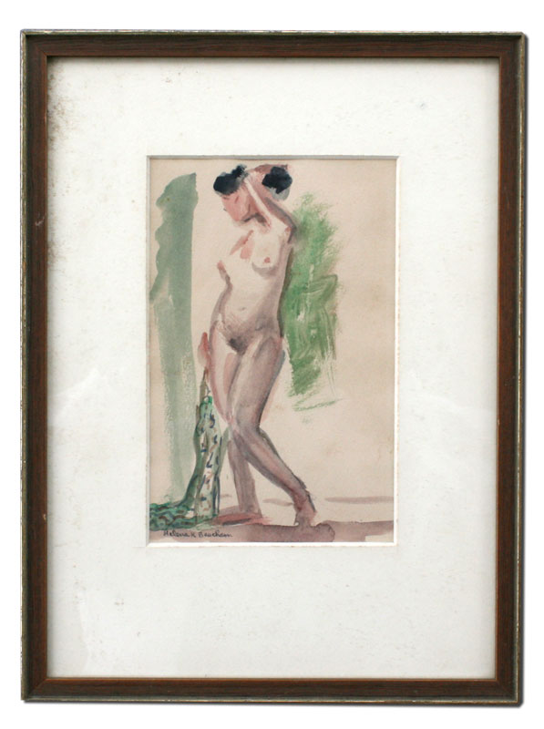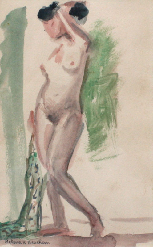 BEACHAM, Helena K., (American, 1900-1994): Female Nude Watercolor, sight size 6 1/2'' x 4 1/4'', signed, framed, 12'' x 9''.