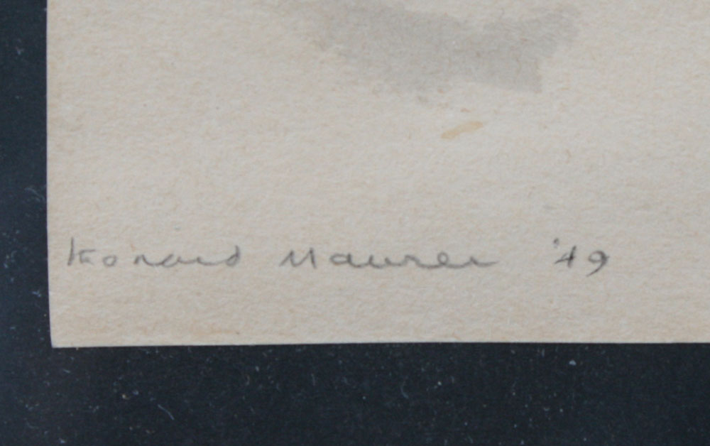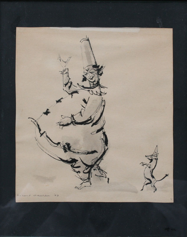 MAURER, Leonard, (American, 1912-1976): Clown and His Pet, Pen and Ink, 7'' x 6 1/2'', signed, dated '49, framed, 10'' x 8''.