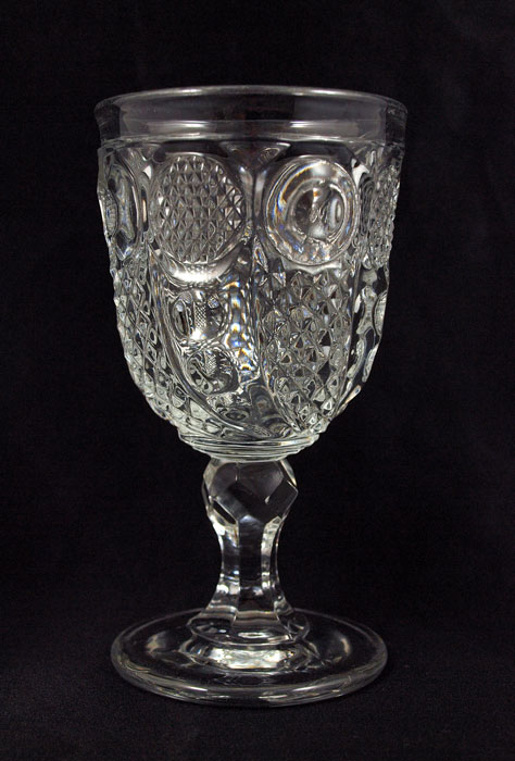 EAPG GLASS SUITE IN A BULLS EYE PATTERN: Approx. 60 pieces to include large 10'' pedestal bowl, graduated set of oval bowls, 8 water goblets, 8 wine, 8 juice or cocktail, and 8 cordials. Also 4 tiny bowls, 4 1/4'', and 9 bowls, 3 1/2''.