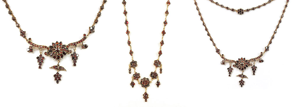 3 VINTAGE CLASSIC VICTORIAN GARNET NECKLACES: Approx. 48 Cts total.