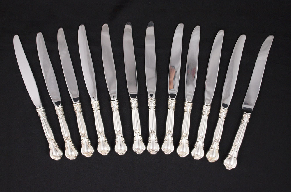 12 GORHAM CHANTILLY HOLLOW KNIVES: 8 7/8'' l.. Approx 6 troy oz.